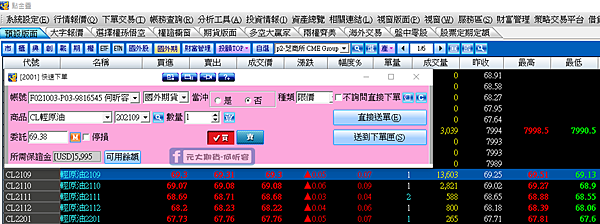 元大期貨精靈:手機直向可以看輕原油期貨下單夾/閃點下單/即時回報