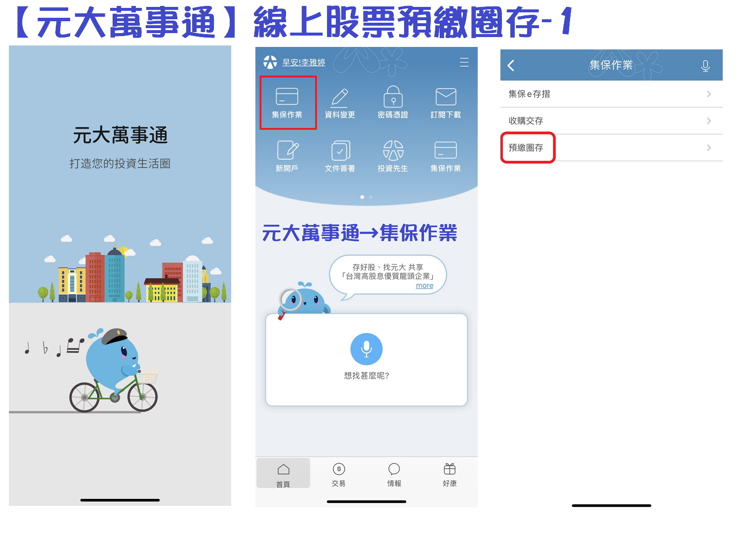 操作流程:元大萬事通→集保作業→預繳圈存