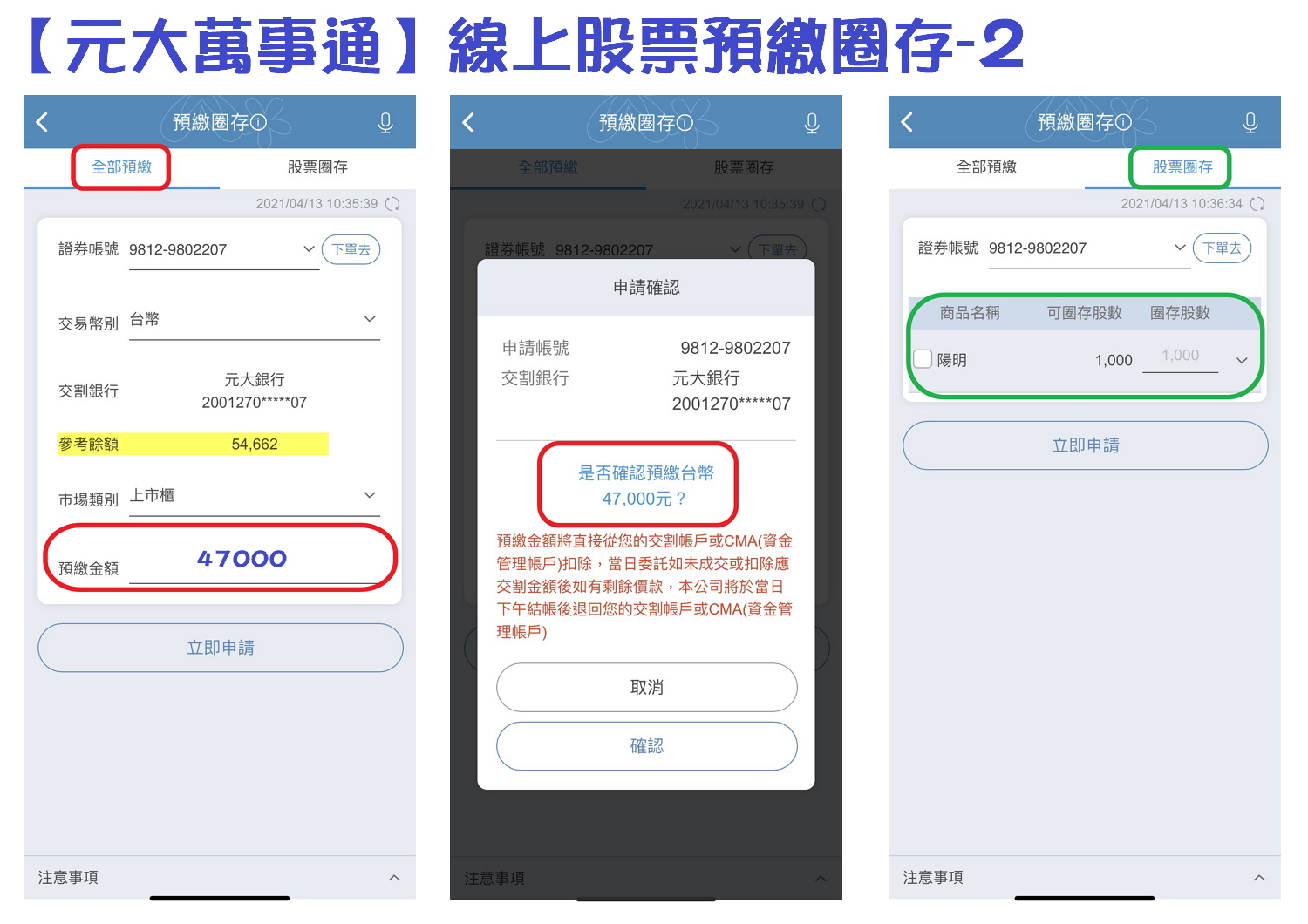 原本T+2才需要扣款的股票,全額交割要先預繳金額至券商指定的帳戶,才可以委託買進,
